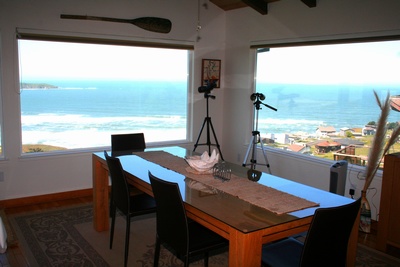 has a wall of windows facing the Pacific...