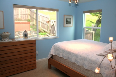 The second bedroom has views of the