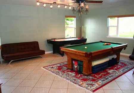 Pool table, Air hockey, Pinball, TV