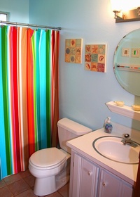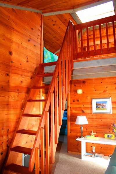 The darling loft overlooks everything, has a trundle bed and a large skylight.