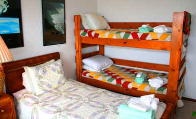 The kids room has bunk and twin beds.