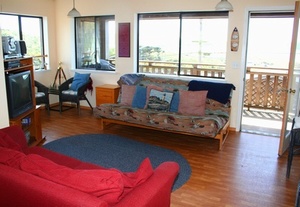 Living Room with 1 Queen Futon Pull Out and 1 Single Pull out |